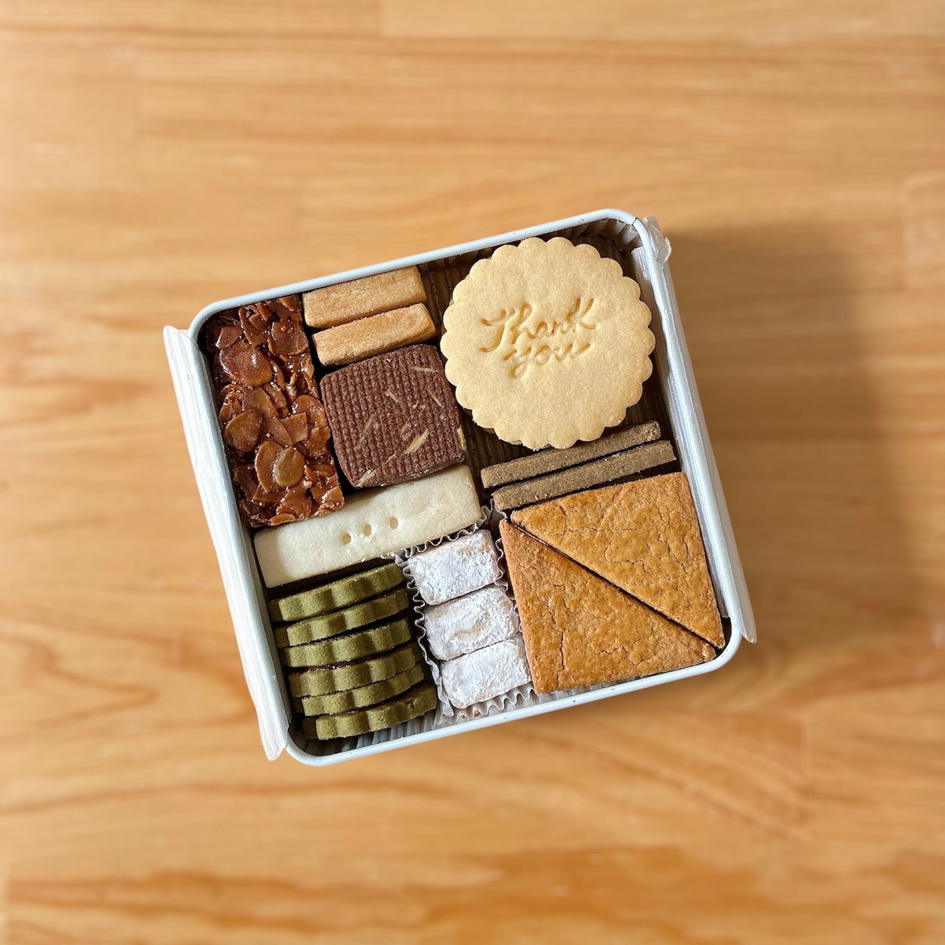 ”thank you” 文字入りのバタークッキー入りなので